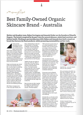 We are feeling blessed to be starting our year with the official release as winners in the Asia Pacific Business awards 2021 “Best Family Owned Organic Skincare Brand - Australia”. View our feature here on page 20.